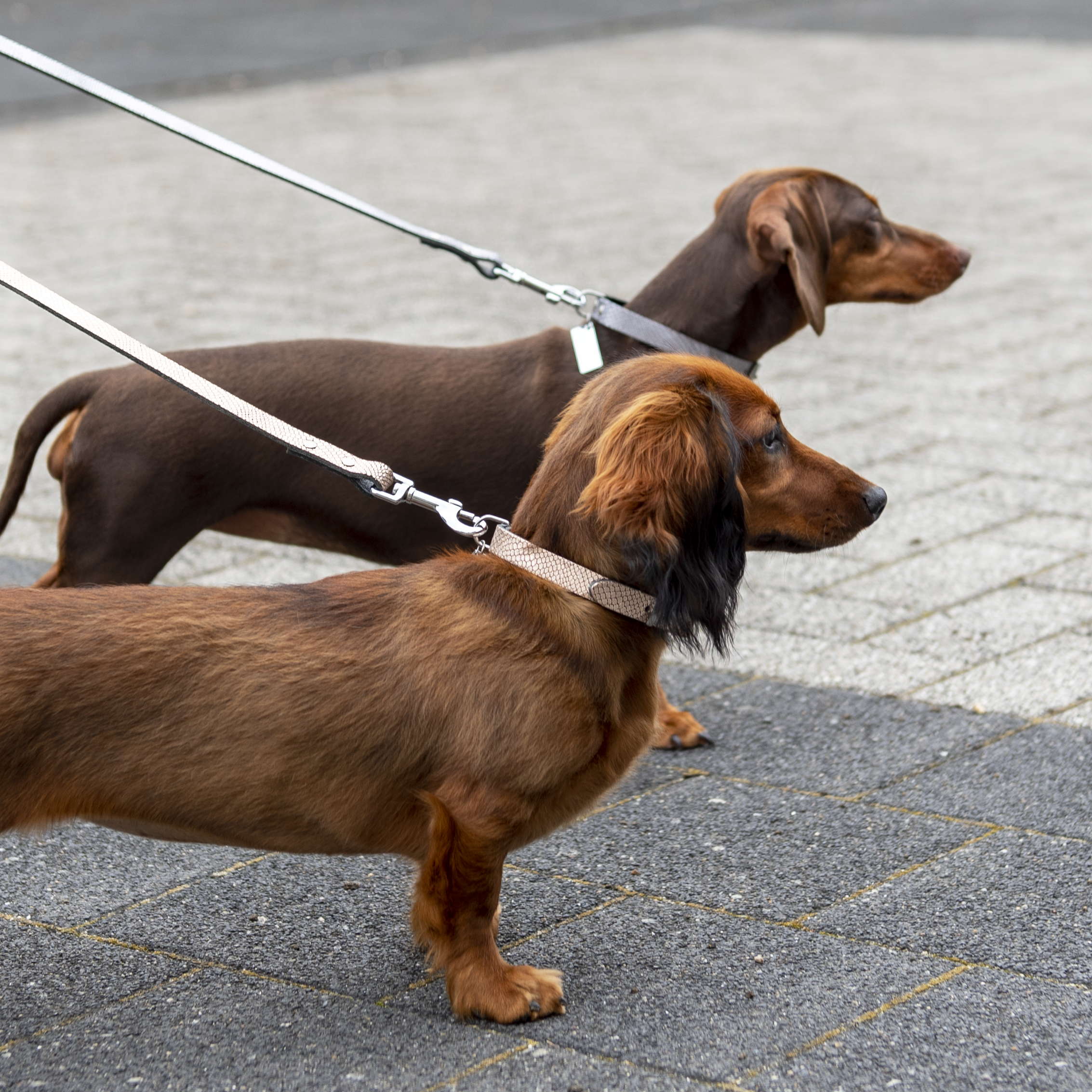 Veilig en praktisch: Naast het stijlvolle uiterlijk, zorgt deze halsband voor veiligheid en gemak tijdens het wandelen.