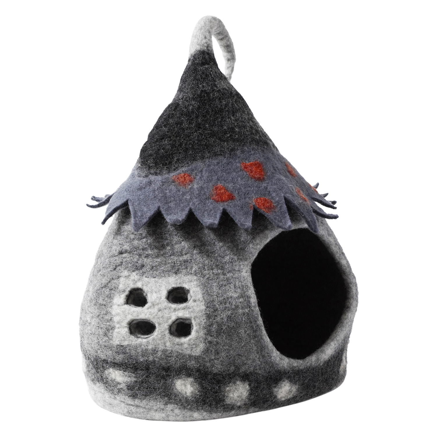 De Grot Sprookjeshuis is een charmante en leuke kattenmand die een speelse draai geeft aan de traditionele kattenmand. Geïnspireerd door de vorm van een sprookjeshuis, biedt deze kattenmand niet alleen een gezellige en afgeschermde rustplaats voor uw kat, maar voegt ook een vrolijke noot toe aan uw huisdecoratie.