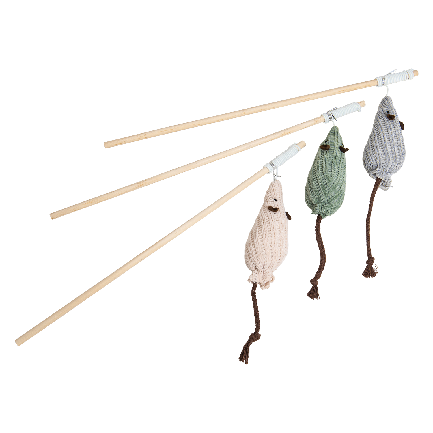 Diverse diertjes: De hengel komt met een assortiment van speeltjes in de vorm van muisjes, wat een afwisselende en uitdagende speelervaring biedt.