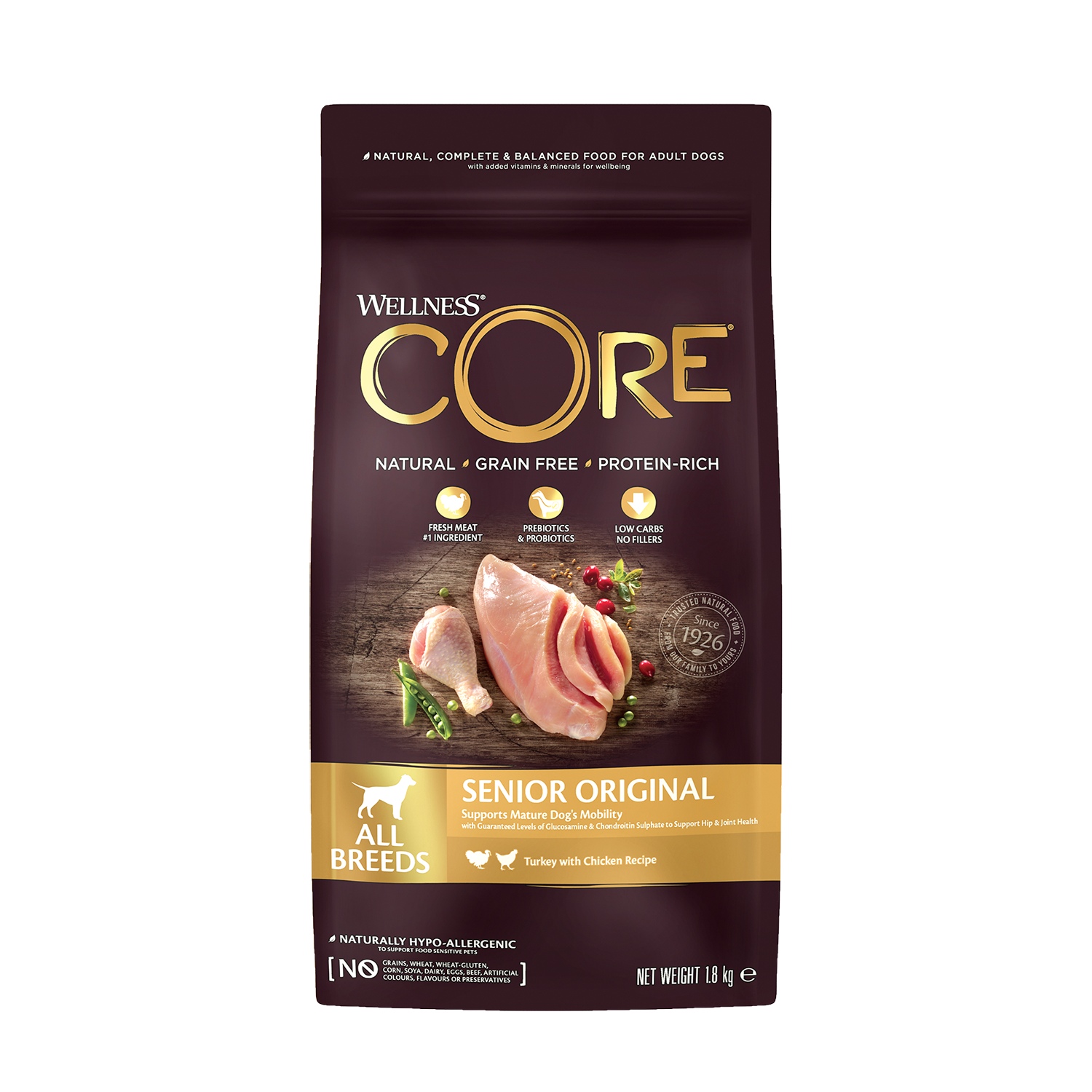/ Well Core Hond Dry Droogvoer-Kalkoen/Kip (4pcs/box)-1.8kg