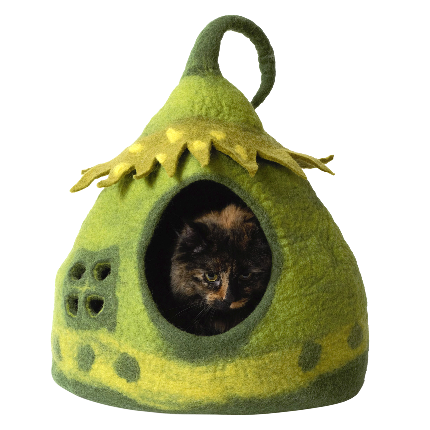 Vrolijk sprookjeshuisontwerp: Het leuke en creatieve ontwerp, geïnspireerd door een sprookjeshuis, maakt deze kattenmand een opvallend en aantrekkelijk stuk in elk huis.