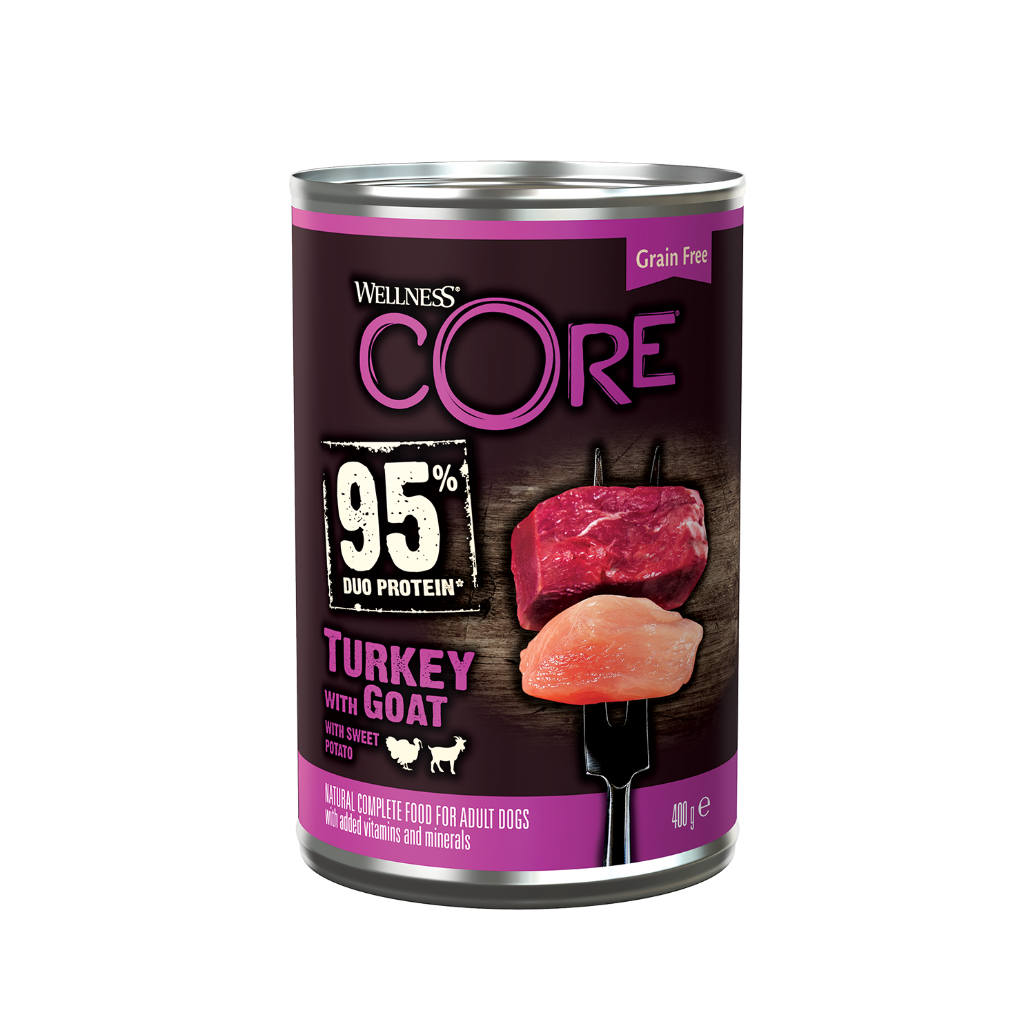 / Well Core Hond 95% Meat Natte voeding-Kalkoen/Geit/Groenten-0.4kg